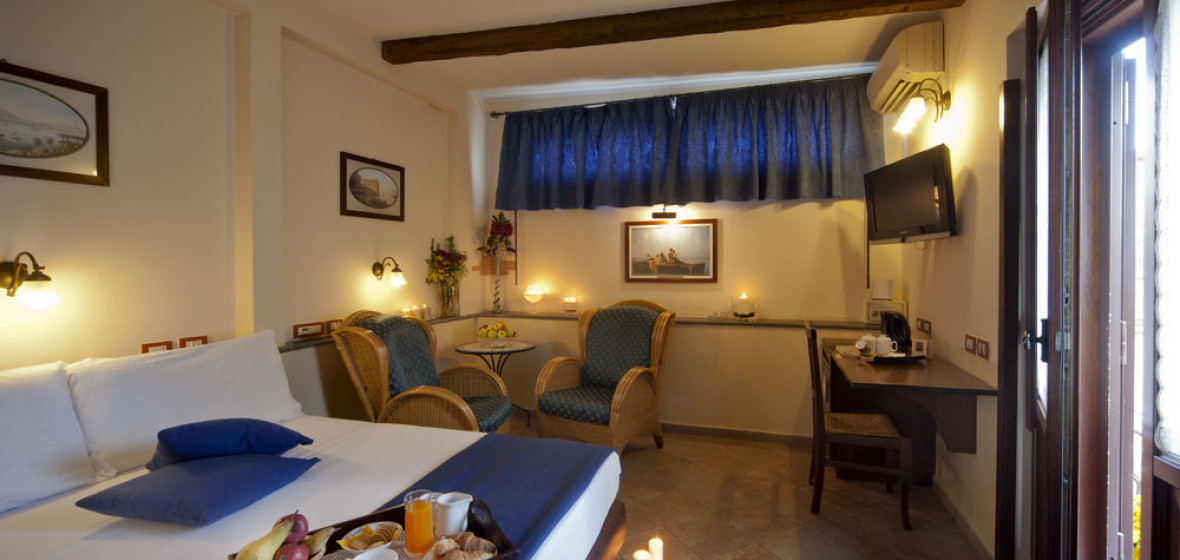 Situated in the heart of Naples’ most colourful neighbourhood (the location might make some feel a little uneasy), this delightful hotel has 14 well-equipped rooms with good bathrooms. The style throughout is modern rustic with lots of personal touches. The two rooms at the top of the building have pretty roof gardens while another two have a second double bed on a mezzanine level that make them suitable for families. Public rooms include a cosy bar and a first floor breakfast room.
