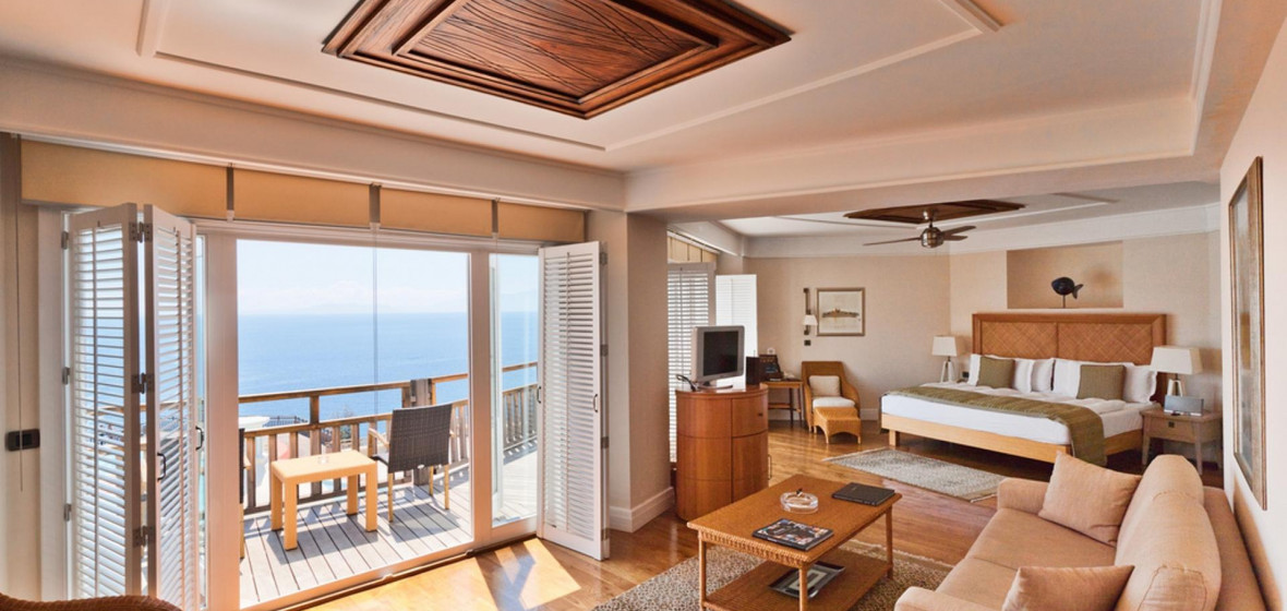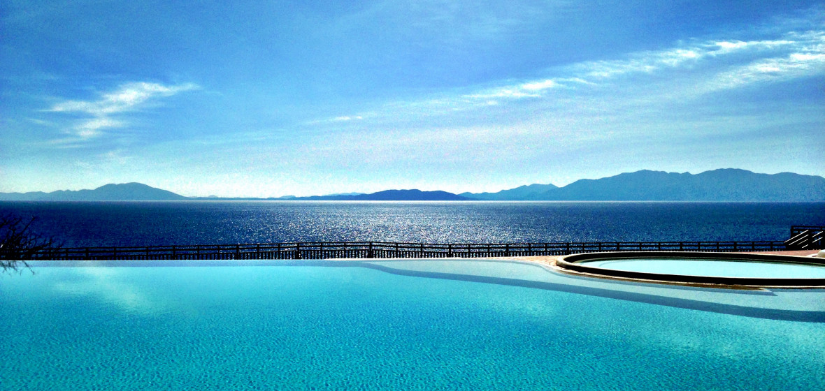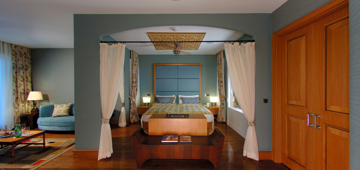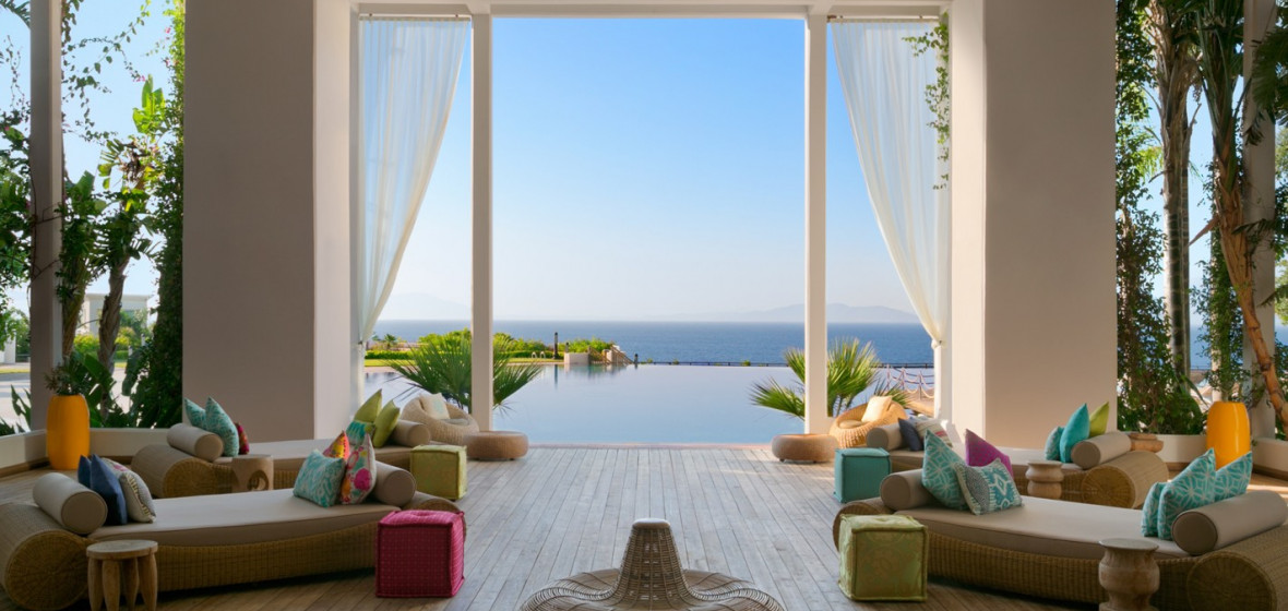 "With floor-to-ceiling white drapes billowing in the sea breeze over wicker lounge beds, the chill-out room turned shisha lounge, which opens out on to the main pool area, adds a bit of pizazz to an otherwise straightforward design."