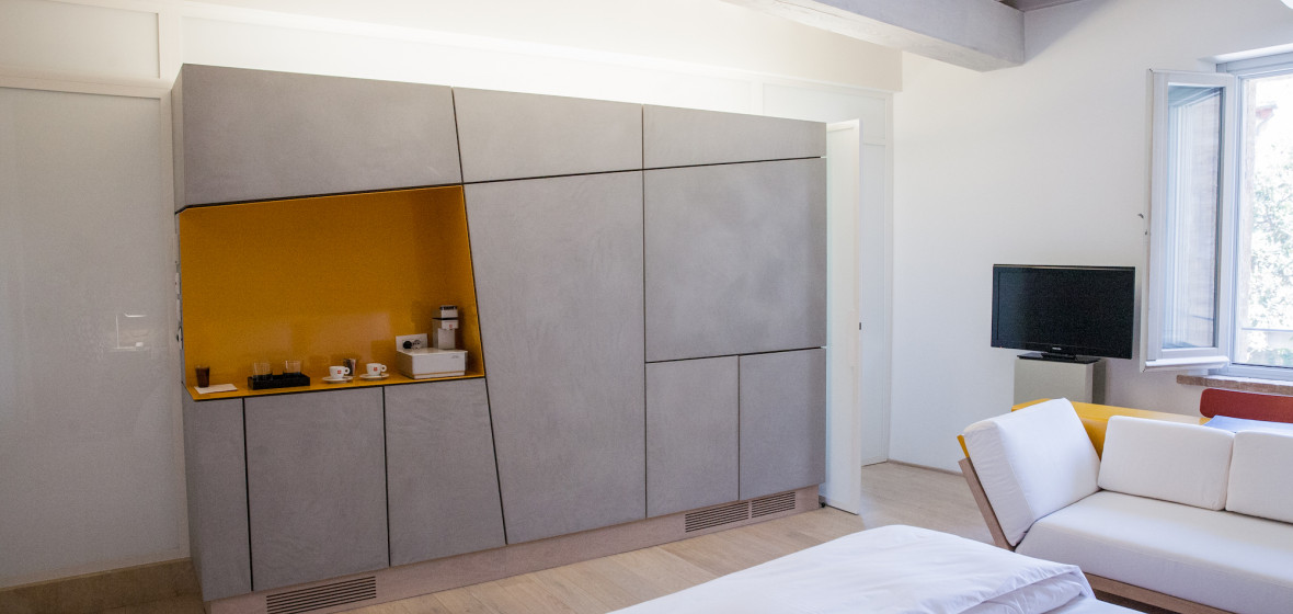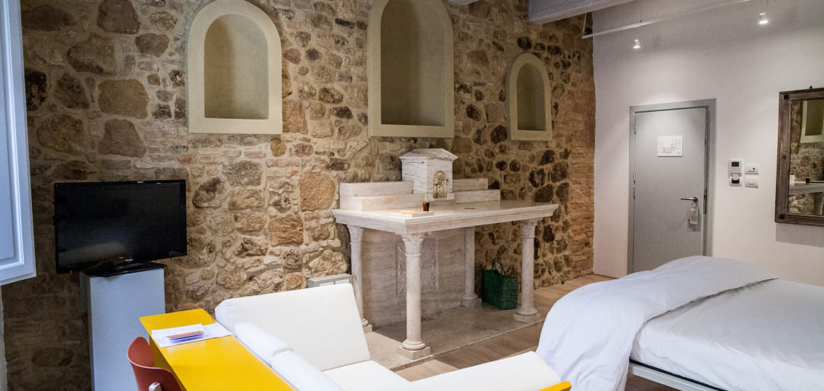 The former nun's cells in this palazzo have been converted into bright and airy guestrooms which blend original heritage details with contemporary design. Original, exposed stone walls nod to the property's legacy, while crisp white linens and sleek modern lines add a twenty-first century feel. Bathrooms have ceramic soaking tubs and windows that look out onto traditional village life or the medieval-style garden.