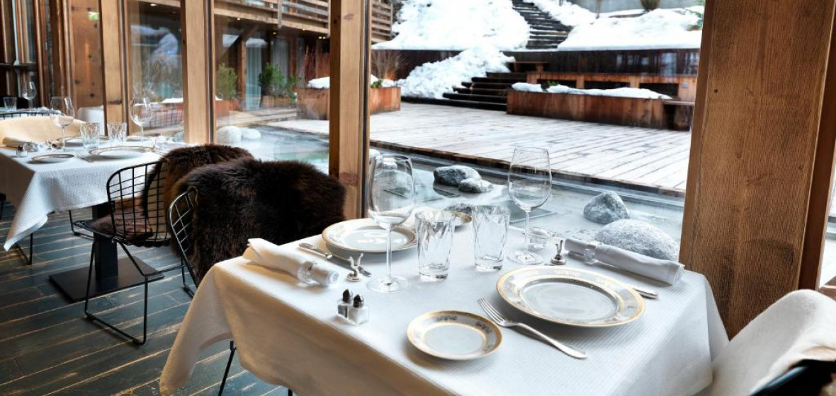 “A chic luxury chalet with a gourmet restaurant, indoor swimming pool and spa. Contemporary rooms and suites have mezzanine floors, traditional wood panelling, elegant furniture and private balconies. Excellent for romantic couples, families or solo travellers looking for an indulgent stay.”