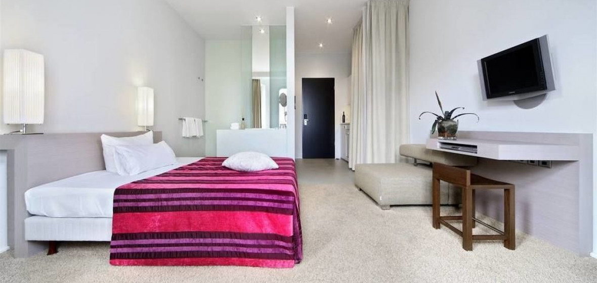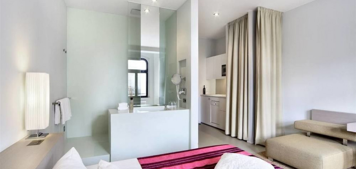 North-west of Alexanderplatz (not a pretty area, but where it’s at), this converted apartment block essentially offers you a medium-sized studio flat, designed by Constantin Silvestrin & Salmaso, with a kitchenette and rainforest shower, two large TVs in the Executive Suite and a very comfortable bed. Downstairs are a spa and an excellent, fashionable, Japanese/Italian fusion restaurant. Don’t expect big hotel service; it’s more like staying with designer friends; slightly scruffy, but undeniably cool.