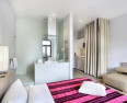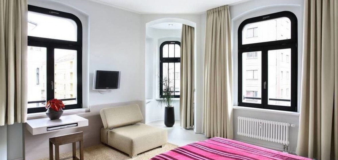 “Cool, easy-going designer hotel in a lively part of East Berlin. White on white studio rooms with magenta throws, kitchenettes and rain showers. A unique Aveda HairSpa and excellent Japanese/Italian fusion restaurant. A fashionable spot on the doorstep of galleries, restaurants, and shops. ”