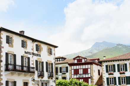 Two friendly brothers, Guillaume and Jean Fagoaga (there is a third, Emmanuel, who runs a nearby equestrian centre), cousins of the owners of Hotel Arraya, have taken over their parents’ farmhouse, adding a restaurant to its five charmingly cluttered and comfortable chambres d’hôte . Chambre Fleur is cosy, ‘à l’anglais’; Chambre Fruit looks onto the mountains; Chambre Pivoine is in the mansard, and looks onto the garden bordered by the river. They are all pretty, homely and countrified, and if you are fooled into thinking, either in the bedrooms or in the delightfully cluttered ground floor rooms that make up the restaurant, that you are in an old Cotswold inn, then you are not far off the mark, for their parents visit that part of the world every year and its quaint style is a definite influence. Even the coffee cups are English bone china. Guillaume is the chef, and his daily menu surprise comprises what he brings back from the market and picks from his own potager. A tranquil garden borders the river. Delightful.