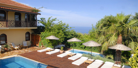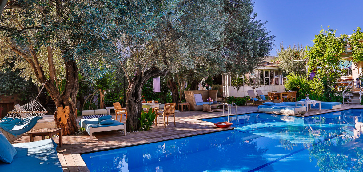Amid the neon-lit happy-hour pubs, pizzerias, dance clubs and garish souvenir shops of Olu Deniz, this is an oasis. There’s no gainsaying the beauty of Olu Deniz’s surroundings, and if you stay here you can enjoy the scenery, the beauty of the lagoon and one of the best beaches in the region without getting too wrapped up in resort nightlife. Tree-shaded gardens surround a large pool, and the hotel itself, with its draped and shuttered French windows, high ceilings, painted wooden floors and whitewashed walls, wouldn’t look out of place in Provence.