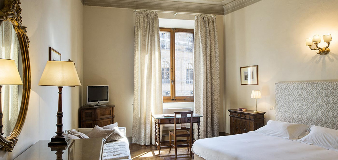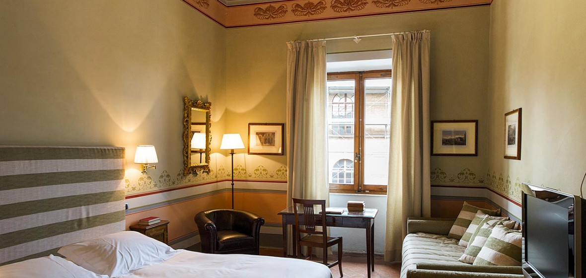 Situated in a pretty, quiet area just outside the centre of Siena, this 14thC palazzo is steeped in history and has retained much of its original character. Rooms are tastefully and traditionally decorated and some enjoy outstanding views of the Tuscan hills. Professional and attentive staff are on hand to assist at all hours, and a beautiful garden overlooking stunning countryside completes the picture.