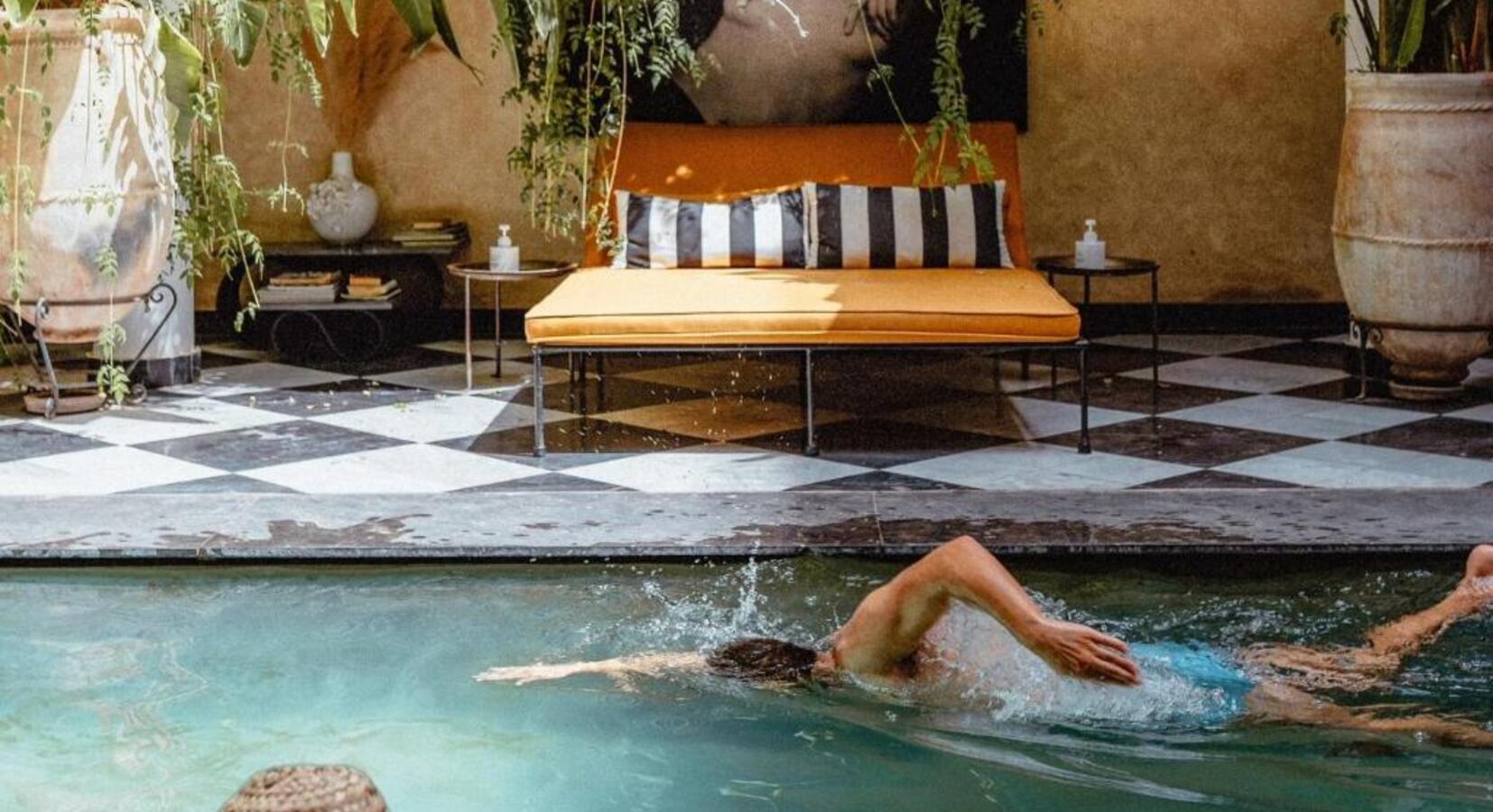 An open‑air, heated pool in the main courtyard of the riadMassage