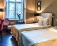 Once a telegraph exchange station this Small Luxury Hotel of the World has 86 solemnly elegant, spacious rooms decorated in calm-to-bright colours, with rich fabrics and classical furniture. Four themed suites are dedicated to pioneers of telecommunications. Classical grandeur comes hand in hand with modern amenities such as plasma TVs and wifi. A glass roof shelters the romantic Russian restaurant Tchaikovsky, in trendy shades of grey and white, with gilded frames and icons on the walls.