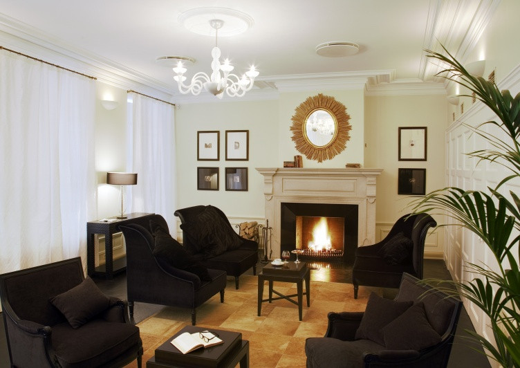 “Classical grandeur in a former telegraph exchange station. Chequered marble floors, rich fabrics, classical furniture - everything in grand proportions. Rooms with four poster beds, richly painted walls and all the mod cons. A romantic Russian restaurant with a glass roof. City style at its finest.”