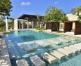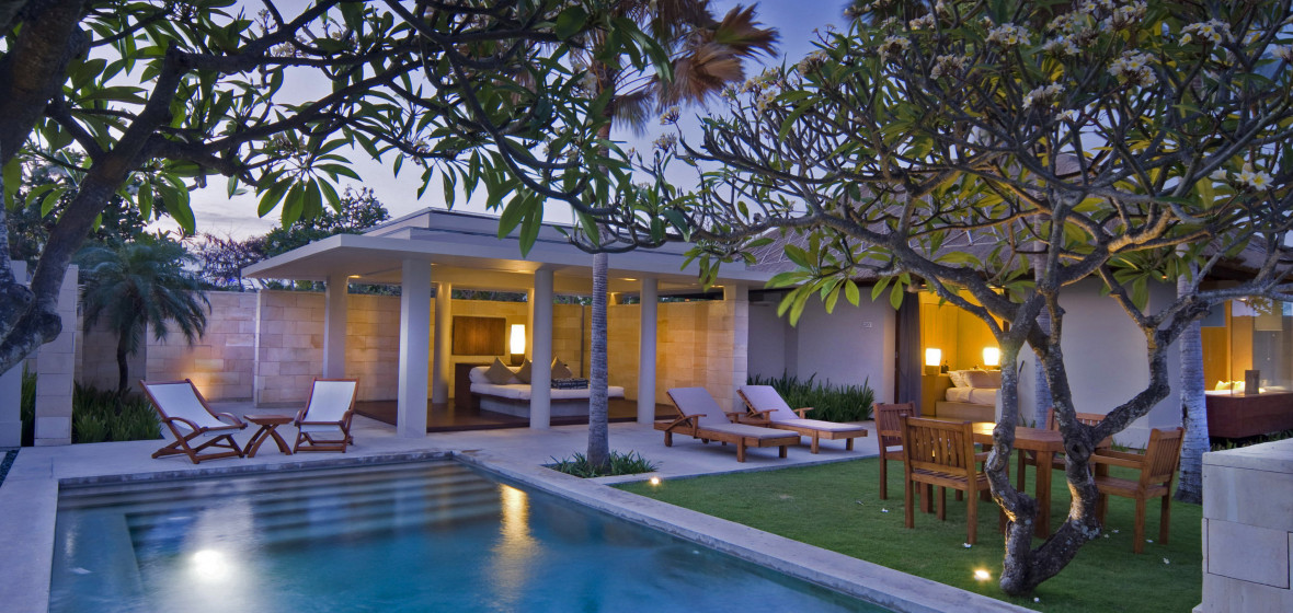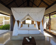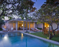 This luxury boutique hotel, consisting of twenty-nine pavilions (choose between the Single, Double and Deluxe Pavilion), each with their own private pool and walled garden is outstanding, even by Bali's high accommodation standards. You could be forgiven for not leaving your private sanctuary, especially as each has its own personal butler to cater to your every whim 24 hours a day. Interiors are white and modern, with beds set upon stone plinths, large indulgent, and shaded day beds outside by your own pool. The en-suite bathrooms (with sliding door and steps into the pool) are massive with both a bath and shower and an incredibly generous supply of fragrant bath and body products.