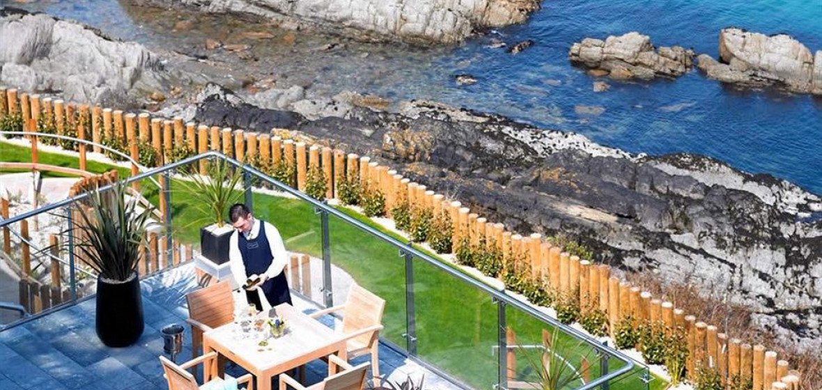 Ultra modern and built into the cliff using natural stone, slate and glass, with cascading terraces offering sensational sea views from public spaces, infinity pool and bedrooms alike. Expect flat-screen televisions, wall-hung fireplaces, sumptuous beds dressed in expensive tweed throws, luxurious bathrooms with stand-alone baths. Dining is exquisite and dramatic: reason alone to come, served in a spectacular glass-walled dining room with silver, Irish linen and heavy Waterford crystal. The stylish bar, candle-lit with heated terraces, mirrors the chilled vibe in the diminutive spa.