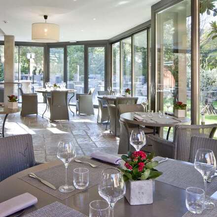 A well-stocked wine cellar includes bottles from the Rhône Valley and Grignan-lès-AdhémarGarden