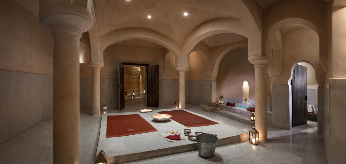 The rooms and suites continue the theme of relaxed, understated elegance with classical yet modern style. Each is individually designed but all are beautifully appointed, and come with huge marble bathrooms with his’n’hers sinks, and both shower and large soaking tub. Some come with private patio or terrace, and others open directly onto one of the many courtyards; some have a fireplace for lighting on chilly days. Outside, there are three heated pools, one rooftop, one fabulous 16m lap pool and one smaller one in a hidden courtyard (this comes as a private option if you book the riad — a two-bedroom unit which sleeps up to five and is ideal for family groups, though it can be booked per room).