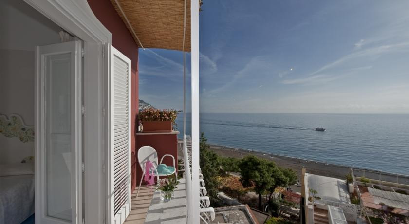 A typical Positano townhouse with 12 simple but appealing bedrooms, each freshly decorated and tastefully furnished, with pretty ceramic wall lights, a painted bedhead and its own sliver of balcony. When the town is hot and crowded, the villa makes a cool sanctuary with its white-painted walls and cream furniture, offset by dashes of blue or turquoise in cushions, carpet or tiles. If you can’t book one of the nine rooms overlooking the sea, there is another fine view from the little glazed room, where an excellent breakfast is served each morning by kind staff. Close to perfection.