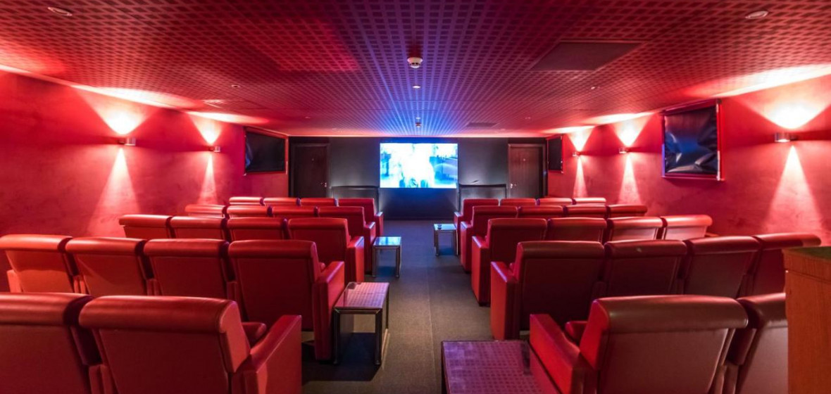 An indoor/ outdoor hydrotherapy pool is part of the spaCinema