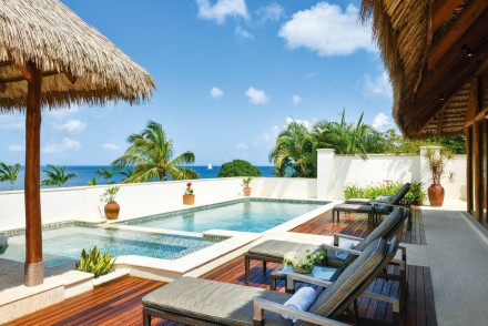 A luxury beachfront hotel overlooking Banana Bay. Contemporary chic rooms feature pale polished woods, private terraces, deep soaking tubs and rainfall showers; the best have private pools. Facilites galore include a spa, kids club, 3 restaurants, two pools, beach and water activities. Superb!