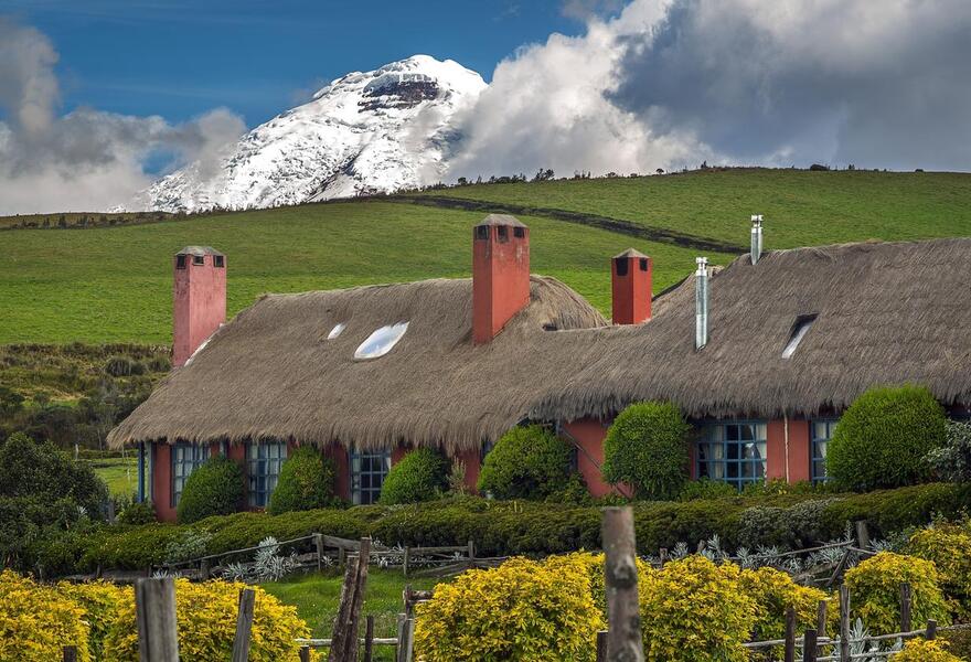 A charming hotel overlooking the mountains in the Cotopaxi National reserve. The rooms are bright and spacious, each with wide windows offering stunning natural views. The restaurant provides healthy, local food for breakfast, lunch, and dinner. Guests can explore the reserve on bike or horse.