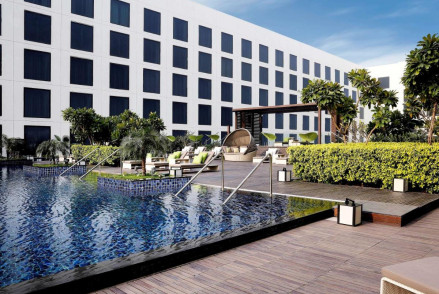 Utterly chic design hotel located within Delhi airport's Aerocity. Modern yet sultry interiors combined with discreet service make this a perfect hotel for a quick stop. A lavish outdoor pool, spa centre, fine dining and capacious baths complete the package. Divine.