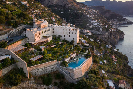 A monastery renovated with romance and elegance. Its celestial views from its perch on a cliff top are to die for. The hotel captures the essence of la dolce vita with its location, understated but immaculate style, and its incredible spa facilities. A romantic destination.
