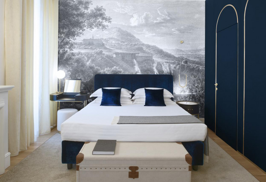 A boutique hotel reviving the Grand Tour spirit with vintage trunks, chandeliers, and poetic decor, in the heart of Rome. Rich hues, velvet textures, and literary touches create an atmosphere of old-world elegance. Indulge in a private spa, sip cocktails at the lounge, or savour Italian flavours.