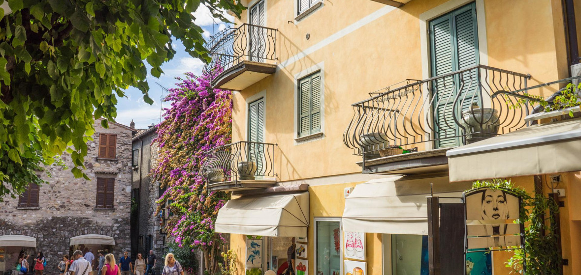 Sirmione’s panoramic views are an obvious draw, and photos of its castle, built so that it’s surrounded by water at the entrance to Sirmione’s old town, and of its elegant promenade, and Roman ruins feature in many Lake Garda brochures. The town also has thermal baths, and is surrounded by orchards and olive groves, so it's popular with visitors, though not all stay over.