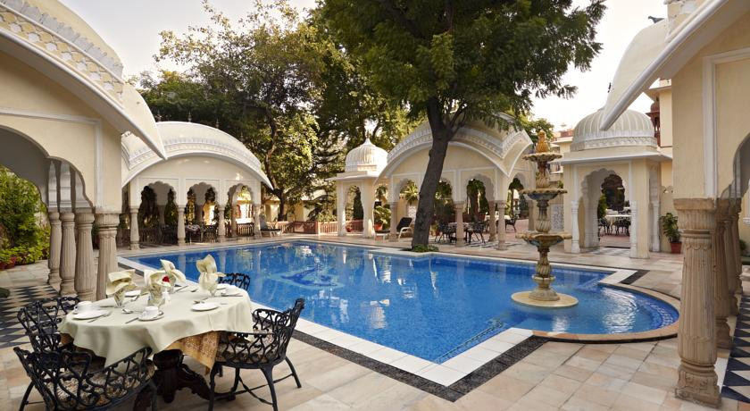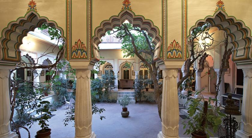 Set well back from the busy road, this pretty haveli centred around two main courtyards, doesn’t feel as close to the buzz of the city centre as it is. The janana, where the women lived, is the smaller and most attractive courtyard – leafy, with rooms on two floors. The main difference in the (21 standard, 24 deluxe) rooms is size; all are traditionally decorated with good beds and bathrooms (many with baths). The lounge is decorated with original mirrored mosaicwork and mother-of-pearl inlay.