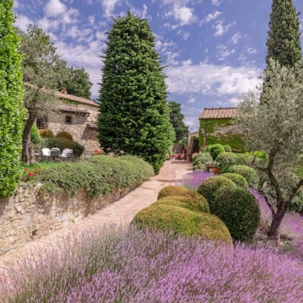 “This stunning 5 star hotel comprises a series of medieval stone buildings with tiled roofs connected by cobbled paths. Bedrooms have high ceilings and terracotta tiled floors. The restaurant serves traditional Tuscan and Chianti cuisine paired with local wines. A quiet spot with glorious views.”