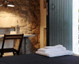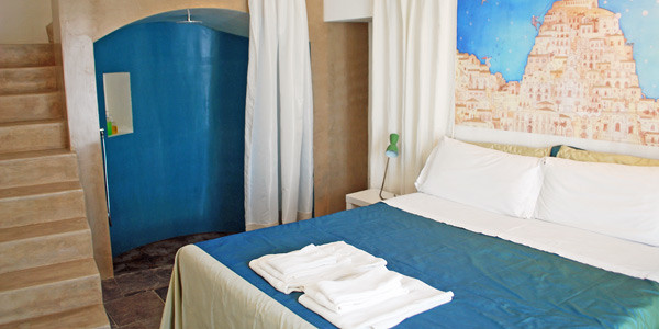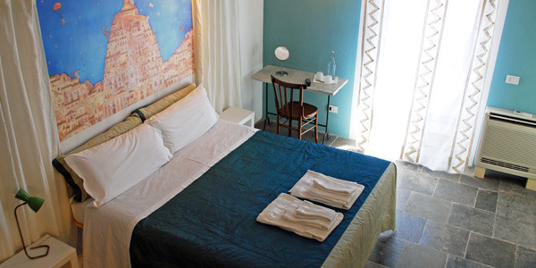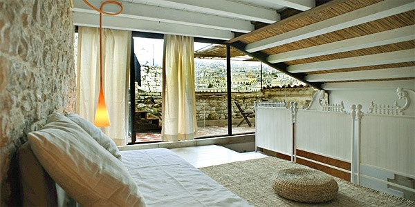 “Stone cottage renovations on a hillside in central Modica. Rustic chic creatively mixed with flamboyant interior design; white stone walls, cerulean tiles, glass panels. Each has a private terrace. Very peaceful, wonderful views, family friendly.”
