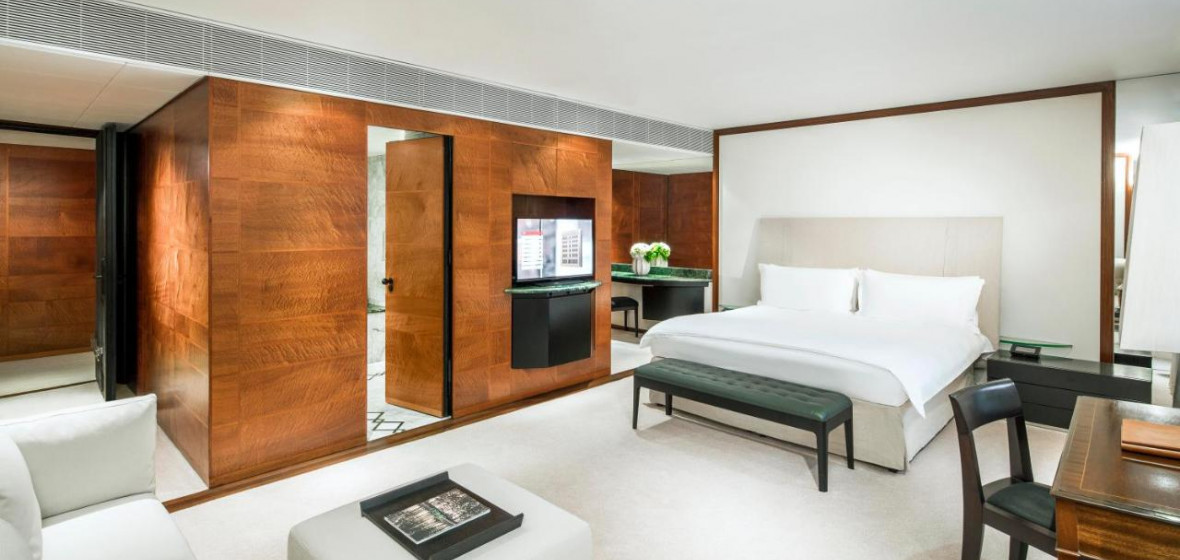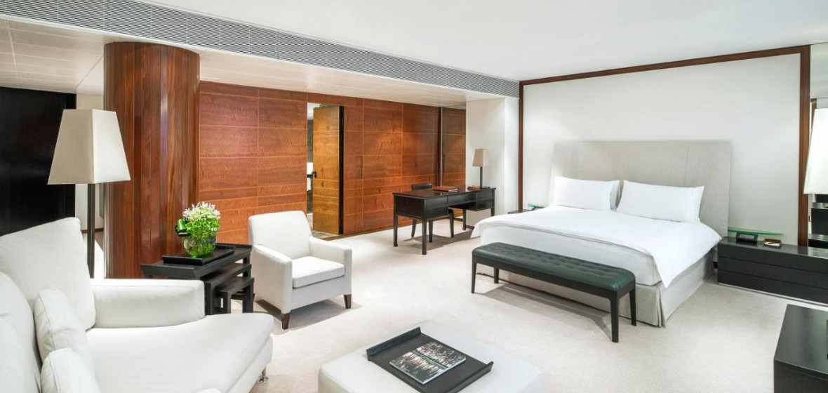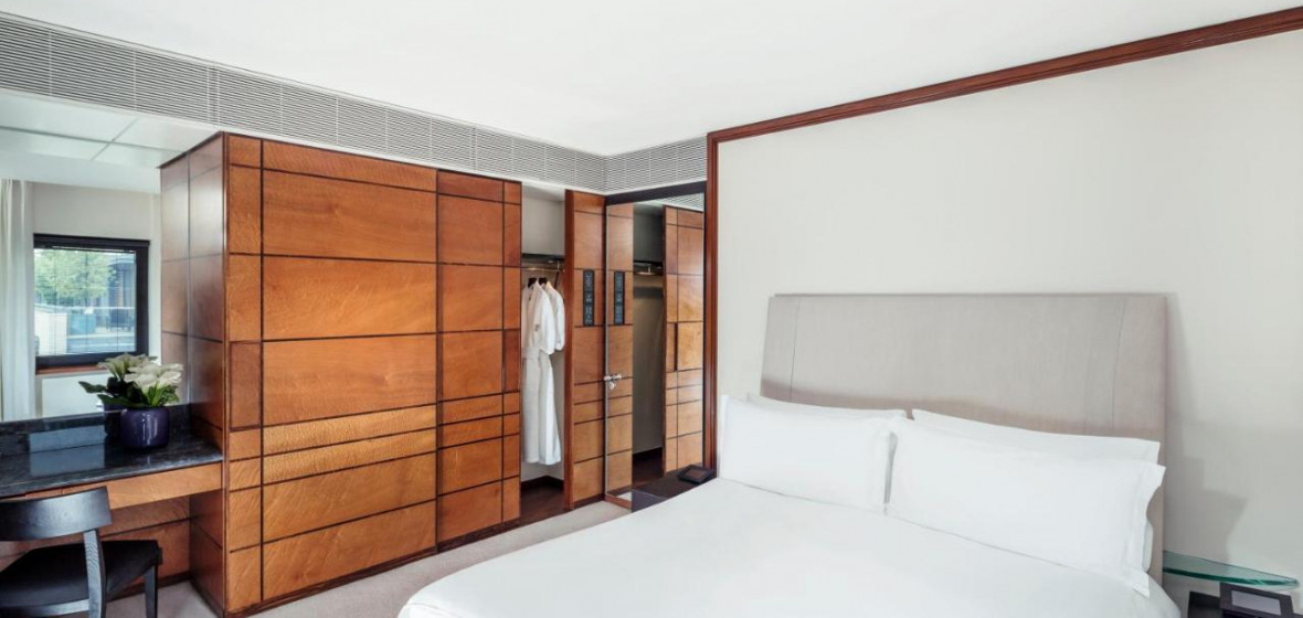 The Halkin, run by the luxury hotel group COMO, prides itself on being one of the first truly design led boutique hotels in London, and remains true to those roots today. Understated luxury is what springs to mind when assessing the merits of The Halkin. Set in what was once a car park, The Halkin is located in a new build Belgravia townhouse (which was cleverly constructed to blend with surrounding period properties), with sleek contemporary interiors. Curved corridors, statement pieces of furniture and sculpture in the common areas, and beautifully finished rooms. Here the vibe is quiet and sophisticated, but certainly not stuffy. Rooms are spacious with large comfortable beds, beautiful wooden veenered walls and cupboards and cool neutral shades throughout. Some call this minimalist, but really it's much warmer than that. Bathrooms are all marble with huge bath tubs, and separate showers, plus really lovely thick towels. For the health conscious there's a gym in the basement and for the business traveller, you'll find all you need in terms of computers, printing facilities etc on site too. The Halkin ticks all the right boxes whether you're here for business or leisure – perfectly located for both and with a chilled out vibe that's welcoming to all.