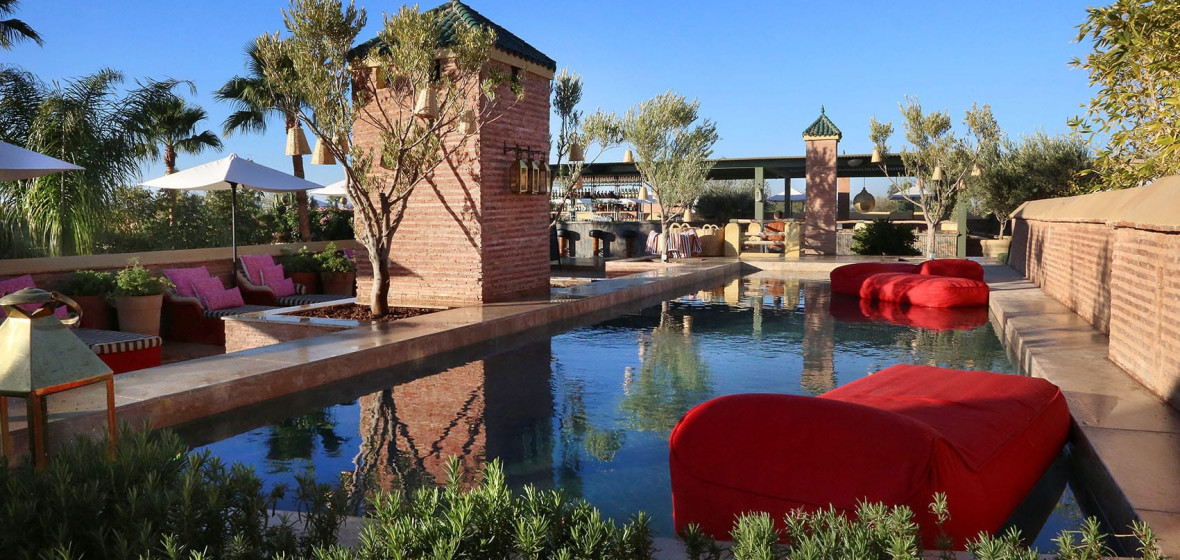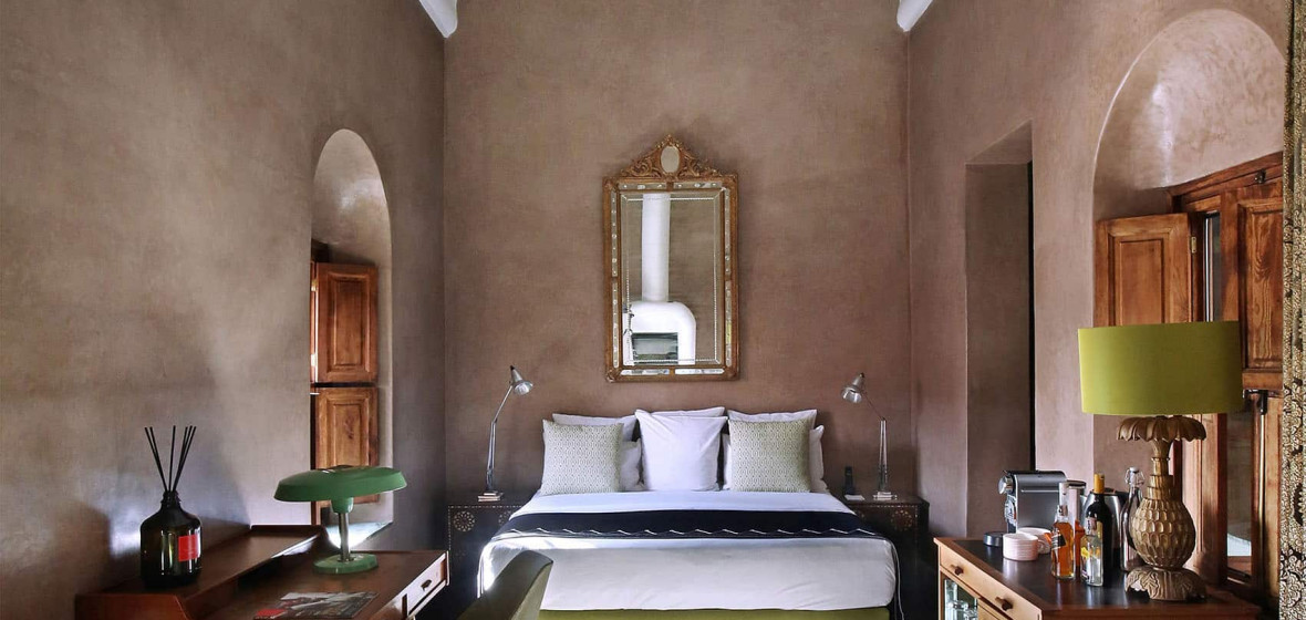 Taking up a whole acre of the medina, El Fenn (meaning ‘fine art’) is a gloriously colour-blasting, glamorously bohemian bolthole — albeit a sizeable one. The discreet entrance gives way to a sublime jewel-hued, atmospheric interior where convivial staff, chicly attired in red, usher guests along lofty corridors past sun-dappled courtyards, cushioned alcoves and into fabulously spacious rooms, many with 17ft high ceilings, idiosyncratic features, king-size beds and huge bath tubs. Originally bought as a holiday retreat, it gradually morphed into a labyrinthine hotel as adjoining buildings were snapped up. It now comprises a masterful maze of 12 inter-connecting riads that house 31 rooms, two cocktail bars, spa, library, boutique, rooftop restaurant alongside a 1300 m2 roof terrace with pool, and unimpeded views past Koutoubia Mosque to the Atlas Mountains beyond. It perfectly balances modernity (there’s an impressive contemporary art collection) with informality and laid-back comfort.