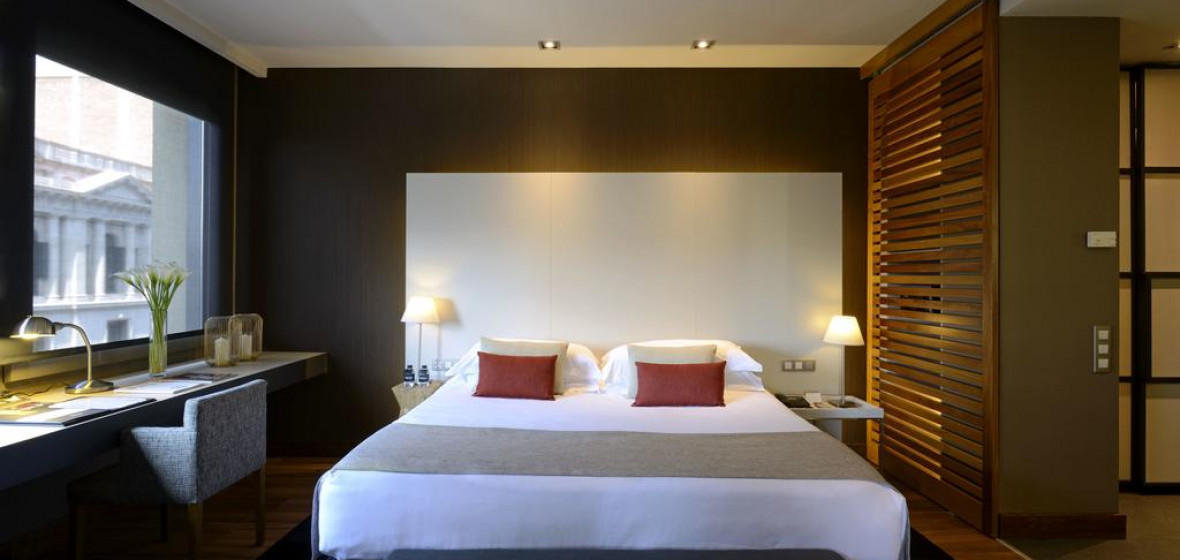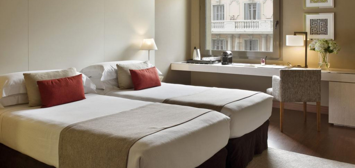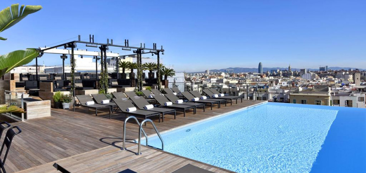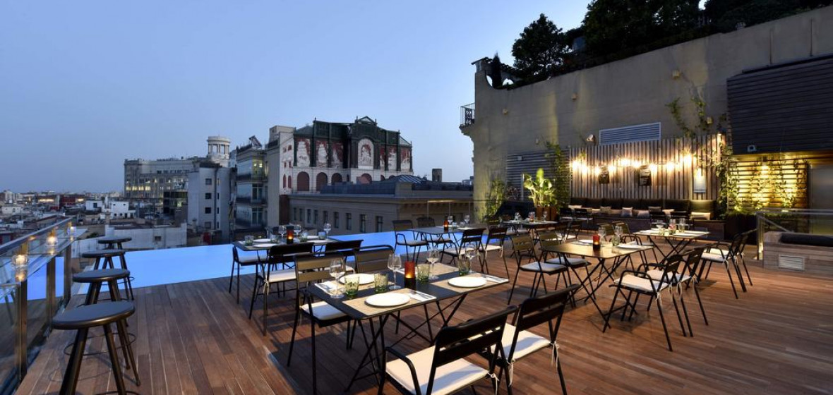 “A large 1920s building renovated with subtle minimalism. An elegant atmosphere and lots of natural light. Its restaurant offers gourmet Mediterranean fare, and there’s two swish bars. The celestial city views from the rooftop terrace and central location make it a haven for dreamy Barcelona escapes”