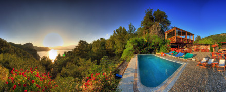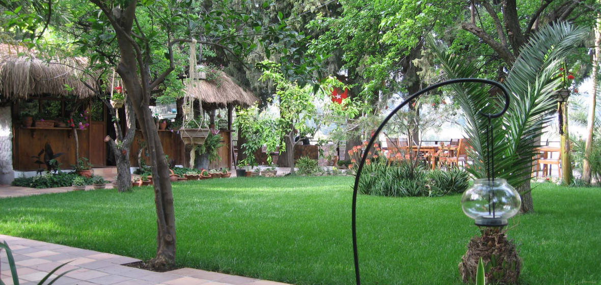 Far enough from Dalyan’s overblown resort area (all souvenir shops, bars and generic restaurants) to be peaceful, close enough to be convenient, and with its own boat for trips down the delta to Dalyan’s wonderful beach. The bedrooms are unpretentious but spacious and comfortable; breakfast is buffet-style with a Turkish accent – yoghurt, honey, cheese, olives and pastries – and dinner is cooked on request (you can discuss your preferences in advance, but the fresh-caught fish is recommended). And the famous rock tombs can be seen just across the river. No pool, though, and a long way from the beach, so not great for a bucket and spade holiday.