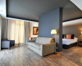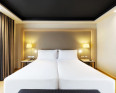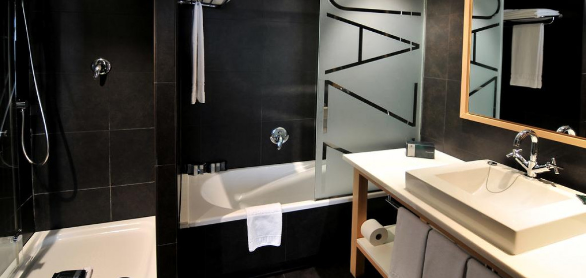 Three star city centre hotel with four star assets, including a spacious rooftop pool, and parking in the basement. The style is contemporary and minimalist, but with warm touches. Bedrooms are precise, handsome and uncomplicated, also spotless and well-equipped. Spacious lobby and attractive bar, accented by warm orange colours.