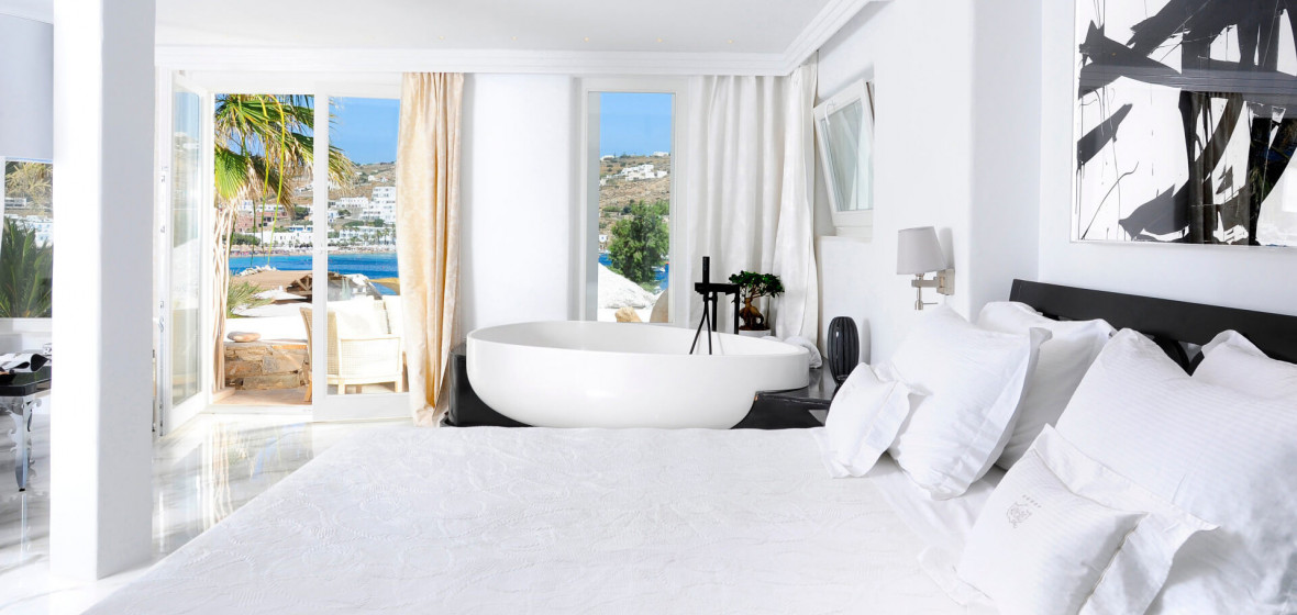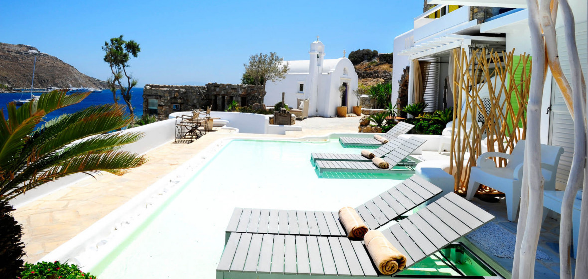 If you really want to impress someone, this is the place for you. Cocooned in luxury, you can look out from Kivotos’s terraces and tiny private beach across Ornos Bay, swim up to the pool bar for exotic cocktails, dine privately in the Noe lounge or by the sea at La Meduse, or sample the delights of the cigar and caviar bar. Oh, and let’s not forget the private 25-metre yacht for guests' use and the complimentary VIP limo that meets you at the airport and takes you back when you reluctantly have to leave.