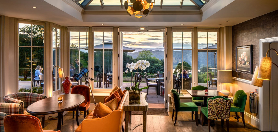 An elegant and stately Edwardian mansion, Linthwaite House has some of the finest views of any hotel in the Lake District. A large sit-out terrace overlooks rolling lawns and, beyond that, Windemere Lake in the valley below. It's particularly magical early in the morning when the mists start to rise. The hotel is part of the South African based Leeu Collection, and this heritage can be seen in the subtle use of leopard and zebra print fabrics and sculptures of exotic beasts dotted around the grounds. There is also an impressive art collection in the hotel itself. Decor in the public rooms is sophisticated and grown-up, with moody dark-hued textured walls complemented by clever splashes of contrasting bright colour in the furniture and soft furnishings, and roaring log fires for added atmosphere. There's a large and comfortable lounge, with doors opening onto the terrace in the summer.