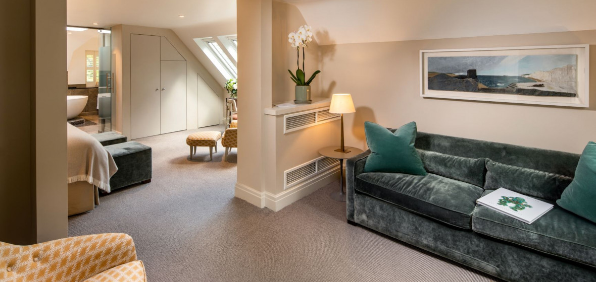 Guest rooms are both in the main house and scattered around the grounds, and there are a number of dog friendly ones that lead out directly into the garden. All are individually designed and are equipped with luxury standards: quality mattresses and bed linens, marble bathrooms with huge walk-in showers, and deep bath tubs, as well as the essential Nespresso style coffee machine.