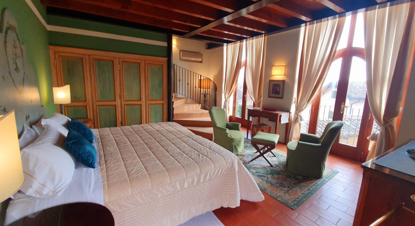 The smart, younger and hipper sister of the Locanda San Vigilio occupies an 18th-century farm in countryside east of the lake. The cooking in the fresh, yellow painted restaurant is highly regarded and buzzes every evening with outside diners as well as hotel guests. There's also a cosy sitting room with deep pink walls and a wood-burning stove. The attention to detail continues into the stylish bedrooms: each a variation on a different coloured theme.