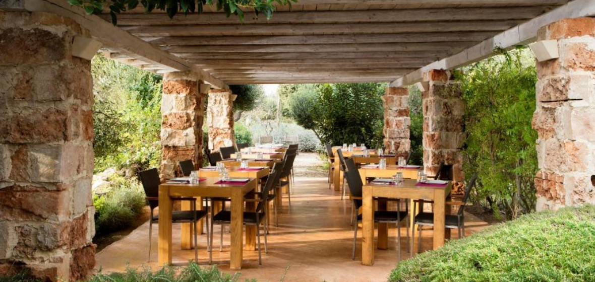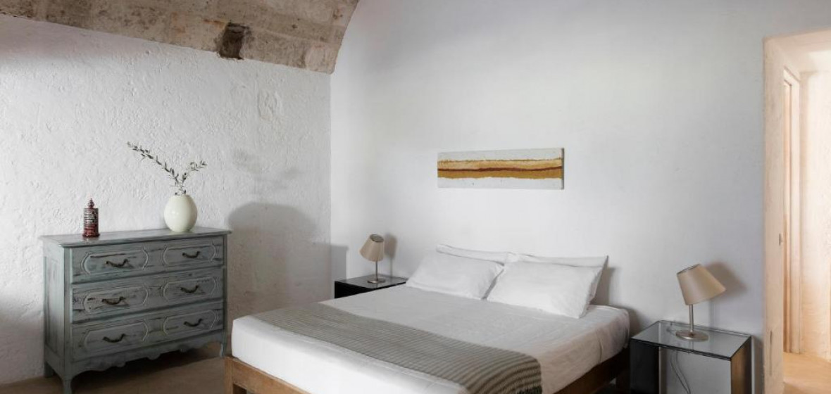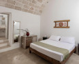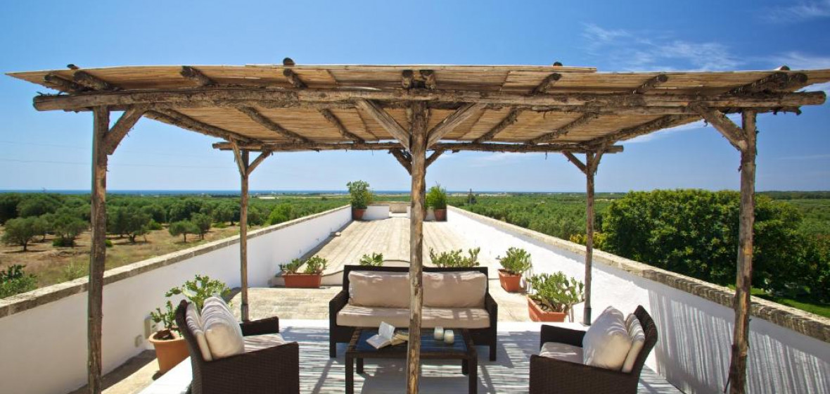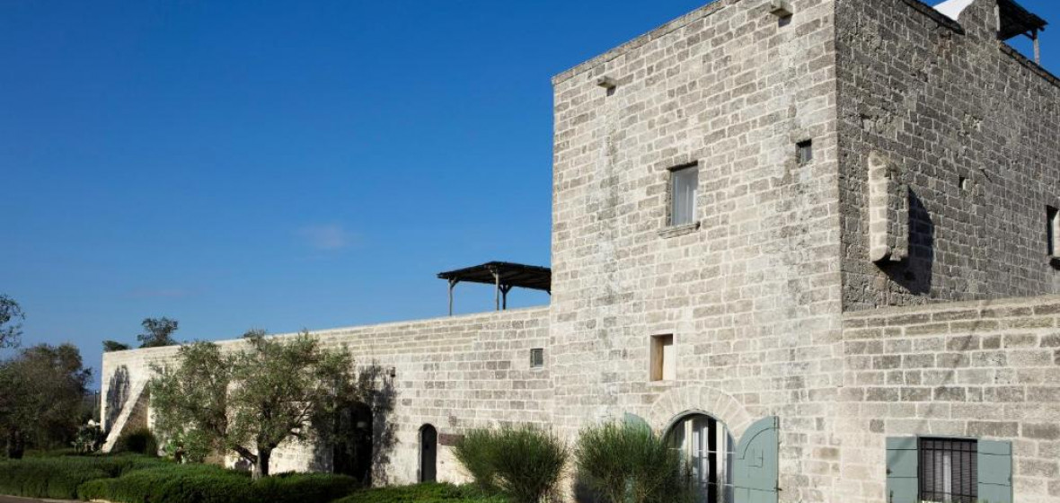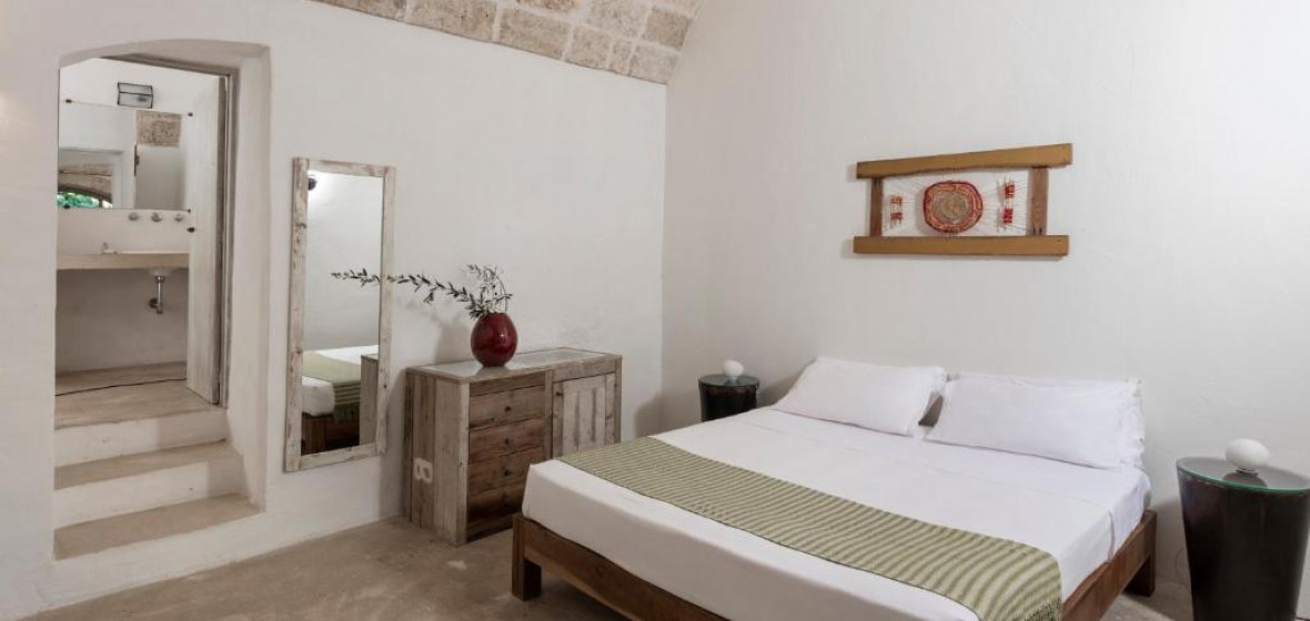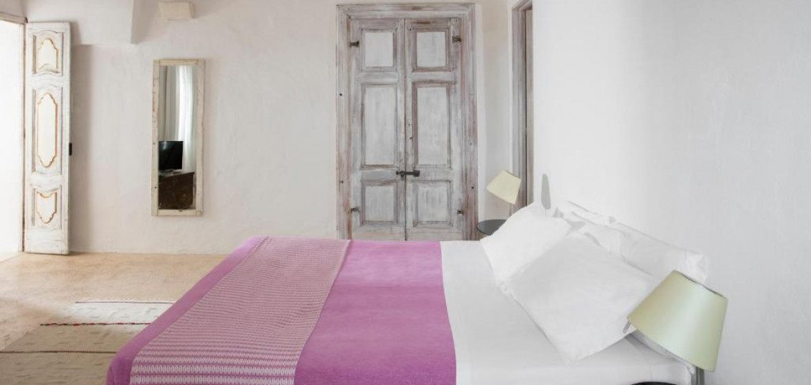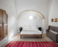 This 15th century brick masseria stands in a beautiful walled garden set in a landscape of endless olive trees just 2 kms from the sea. Two suites are housed in the original tower; the other seven bedrooms are in low adjacent outbuildings. They are done out with simple good taste with an ethnic slant; kilims and colourful bedspreads are set against white walls and bare stone vaulted ceilings. Public space is limited to the garden where comfy chairs are arranged under trees and wine coloured umbrellas shade the pool area.