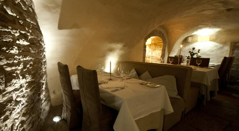 Occupying a 14th century building, the hotel carefully preserves its medieval heritage, while offering modern amenities such as plasma TVs and wifi throughout, as well as a sauna, free for guests. No two of the 37 rooms are alike, with uneven walls, beamed ceilings, hand-painted frescoes and original fireplaces. Breakfast is taken in the cavernous basement, and there’s also an Ice Bar and courtyard restaurant. Full of atmosphere.