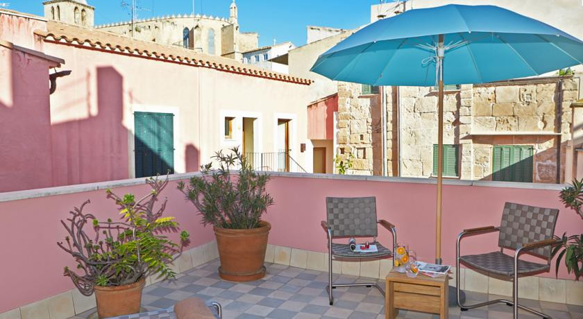 Stylish boutique hotel with 19 rooms in the old town. All rooms have showers, some have bath tubs. The Junior Suite has a terrace, but the other rooms (like most in this part of town) have no view to speak of. There is a splash pool in the courtyard and a small bar. But the hotel’s strongest suit is its use of bright colours and original contemporary art. If you are determined on one of the ‘designer’ hotels in Palma, this is certainly one to check out. In the end, your choice will boil down to which you like the look of best. Palau sa Font is more colourful than most and less ‘up itself’ than some.