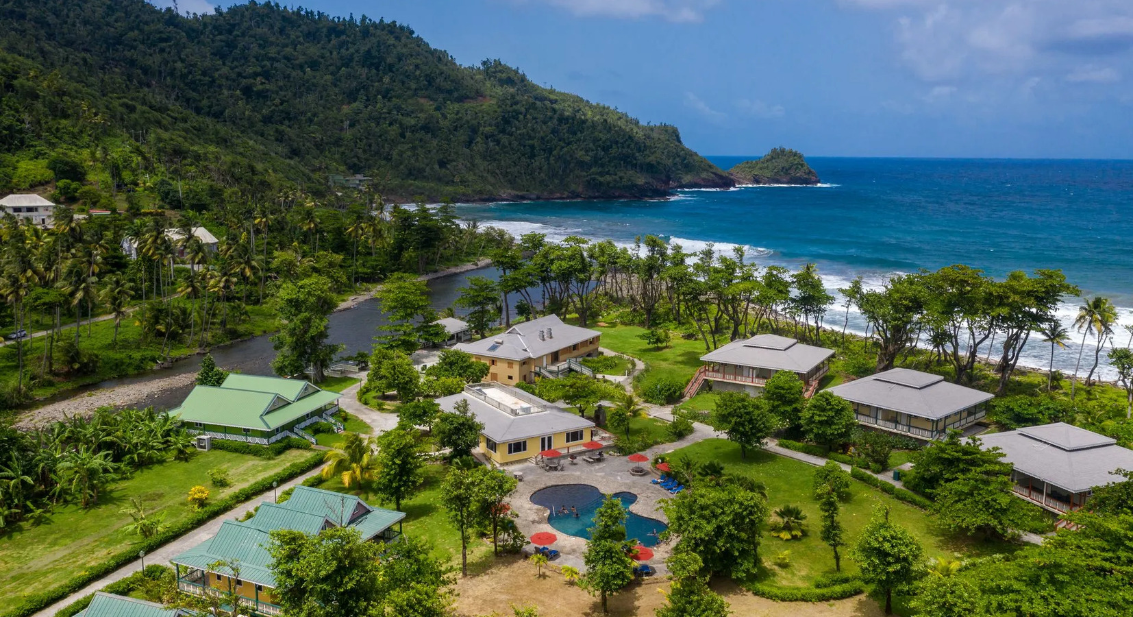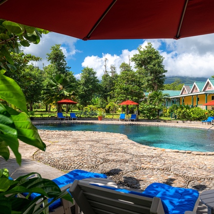 Rosalie Bay Eco resort is a quiet, unassuming property with a relaxed charm. It uses renewable energy and has a strong focus on wildlife protection including support of local turtle conservation. The rooms at Rosalie, set in colonial style buildings, have a homely feel with wooden beds, comfortable armchairs and large bathroom with rainfall shower. Each room has a balcony with loungers and views over the lush gardens. Set within a 28-acre nature reserve the property is home to numerous species of birds, plants and wildlife. Meals are served in the airy Leatherback restaurant which also has a small bar. Relax and enjoy cocktails around the pretty saltwater pool before dinner which offers local dishes using organic produce. The restful Glo spa has three treatment rooms offering aromatherapy, massage and body scrub. The beach is nearby but swimming is dangerous in this part of the island and guests wishing to do so are advised to swim in the river Rosalie.
