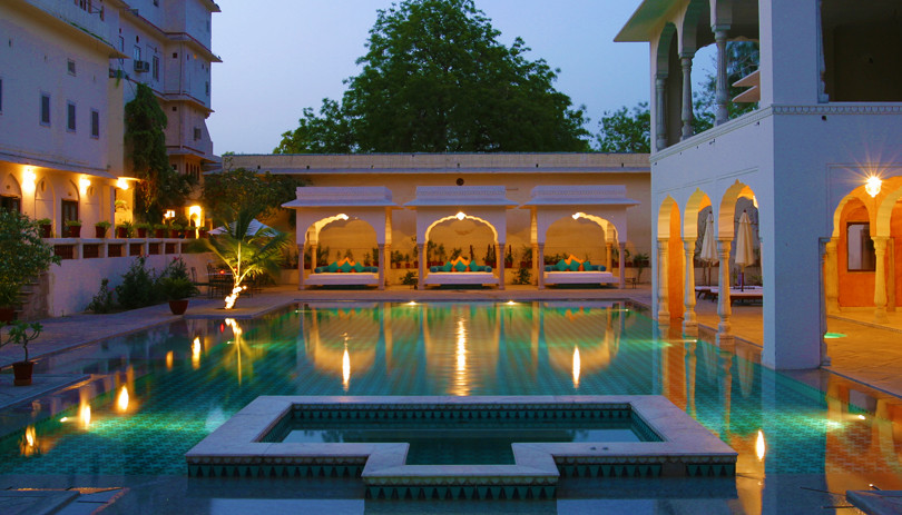 This large haveli, the former townhouse of the Maharaja of Samode has been run as a hotel by his two sons for 20 years and deserves its popular reputation. 39 excellent rooms and suites, either in the old house or, more recently built, in the garden. Pretty courtyards, stone stairways and corridors (ask for a garden room if your’re not good on your legs) and beautifully laid out gardens are all part of its charm. A quiet escape in the middle of the bustling city of Jaipur, Samode Haveli is a great spot for individuals or couples, since the hotel does not allow groups. The swimming pool is one of Jaipur's best and is a highlight of the hotel. Those that want to get some sun can lounge by the water at the poolside bar.