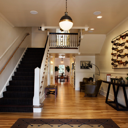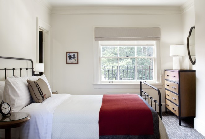 Built in 1903 and opened as a hotel in 2012, this two-story, Georgian Revival–style building served as officers' quarters in military days past and now has 26 guest rooms—17 of them suites—complete with gas fireplaces and modern-meets-salvage-store finds, such as wrought-iron beds, industrial-inspired task lamps, historic black-and-white photos, and Pendleton blankets. In 2013, the inn added the Funston House, which contains four rooms surrounding a common living room, dining room, and kitchen, ideal for larger groups traveling together and families. Perks include a nightly wine-and-cheese reception and a Continental breakfast buffet. This place is as homey as it gets, complete with rocking chairs on the porches and an outdoor fire pit. Numerous hiking and biking trails in the Presidio, a National Land Trust, are nearby.