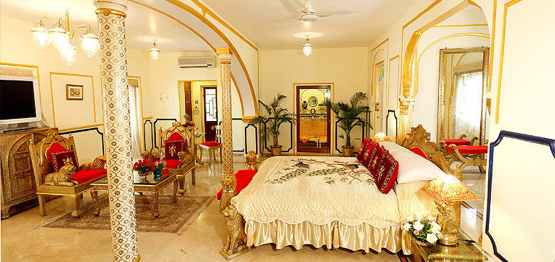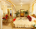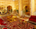 The present owner, a descendent of the ruler of Chaumoo who built this Mughal palace in 1727, has gone to great lengths to refurbish this beautiful heritage building to it‘s original splendour. The 38 rooms and suites are lavishly furnished and decorated with original artefacts, and the bed-linen is the finest from Italy. The elegance of the gardens and verandahs are as important as the grand and airy interiors. The Swapna Mahal restaurant houses a unique collection of crockery and the largest chandelier in India, from Swarovski. Just as dazzling, the Maharajah’s Presidential Suite, on three floors with it’s own roof terrace, is sublime.