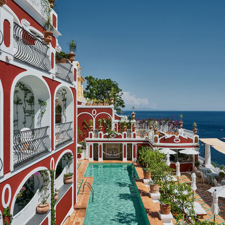 It’s difficult not to be utterly charmed by the delightful Villa Rosa, with its eager-to-please staff, captivating sea views and floral theme running throughout (courtesy of owner Virginia Caldiero). Best of all are the beautiful bougainvillea-covered terraces leading from the bedrooms, ranging from decent-sized to hugely spacious and all offering unbeatable views of the Mediterranean. A simple but delicious continental breakfast is brought to your room, a real treat when enjoyed on your private terrace.