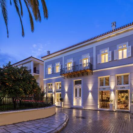 Nafplio has been dubbed one of the romantic towns in Greece, and strolling through Syntagma Square it is easy to see why; pretty, colonial style buildings nestled around the plaza are low-lit at night, with restaurants and bars buzzing with the noise of Greeks and tourists alike. Xenon Inn sits in the square itself, in a notable period building that has been beautifully restored. The unfussy interior design gets it just right; the natural tones and dark wood accents perfectly complement the original stone walls and high ceilings. Book the suite for fantastic views of Palamadi Castle. The café downstairs is a little more ornate, but the corner bar with the back-lit drinks wall is a nice feature, and there is a great selection of cocktails on offer. Sink into the cosy café chairs for a coffee if you prefer. With all the historical sites within easy walking distance, there will be plenty of time left over to luxuriate in your romantic suite.