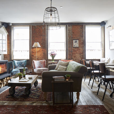 Friendly staff show us to the Picture Room, a light and airy double with crisp white linen and walls hung with playful graphic prints saying things such as “Rise and shine”. It’s modest rather than spacious: a comfy double bed leaves room for two stylish arm chairs and a desk with views to the neighbouring buildings. (Only the two attic rooms have sea views.)