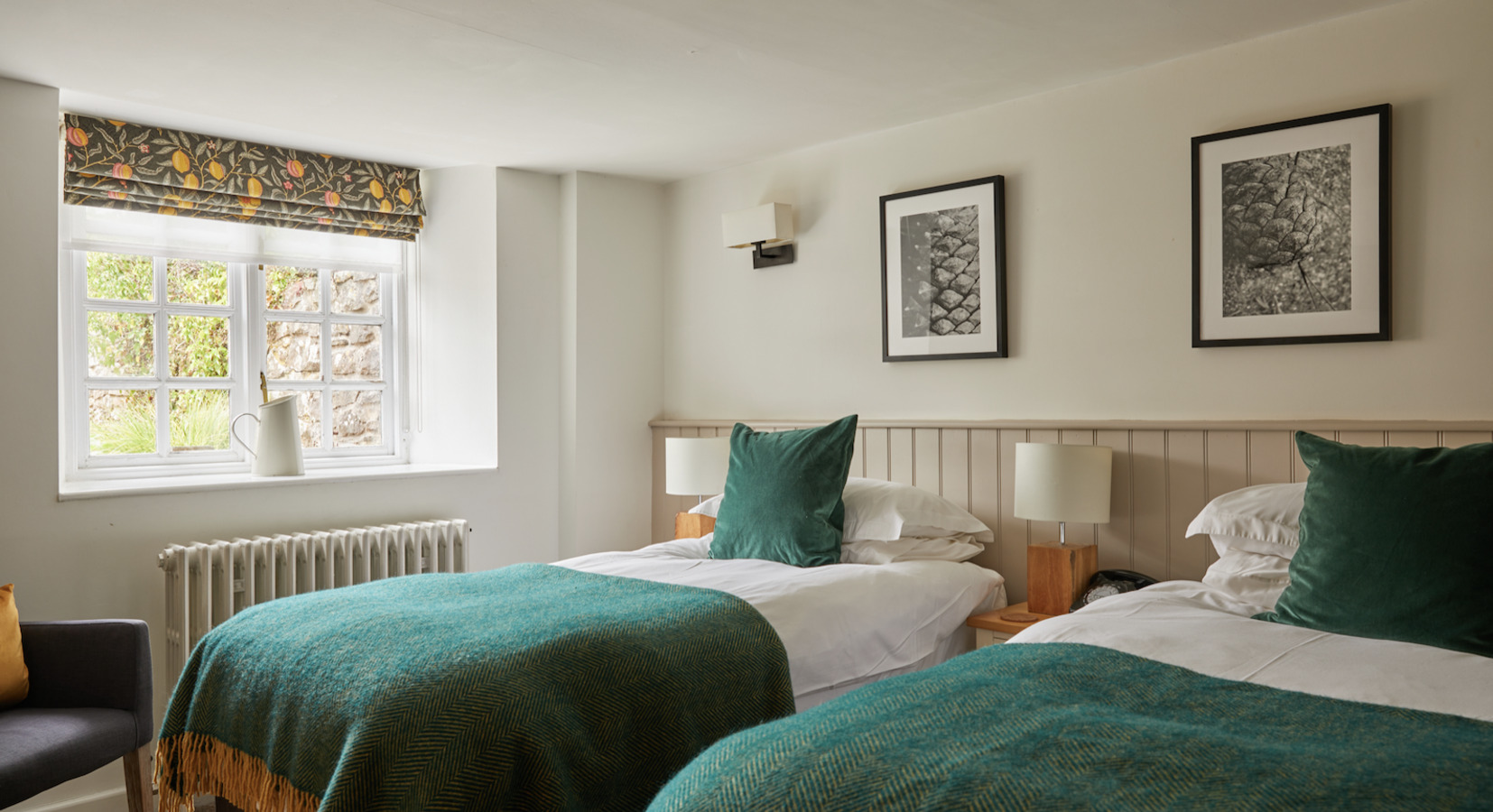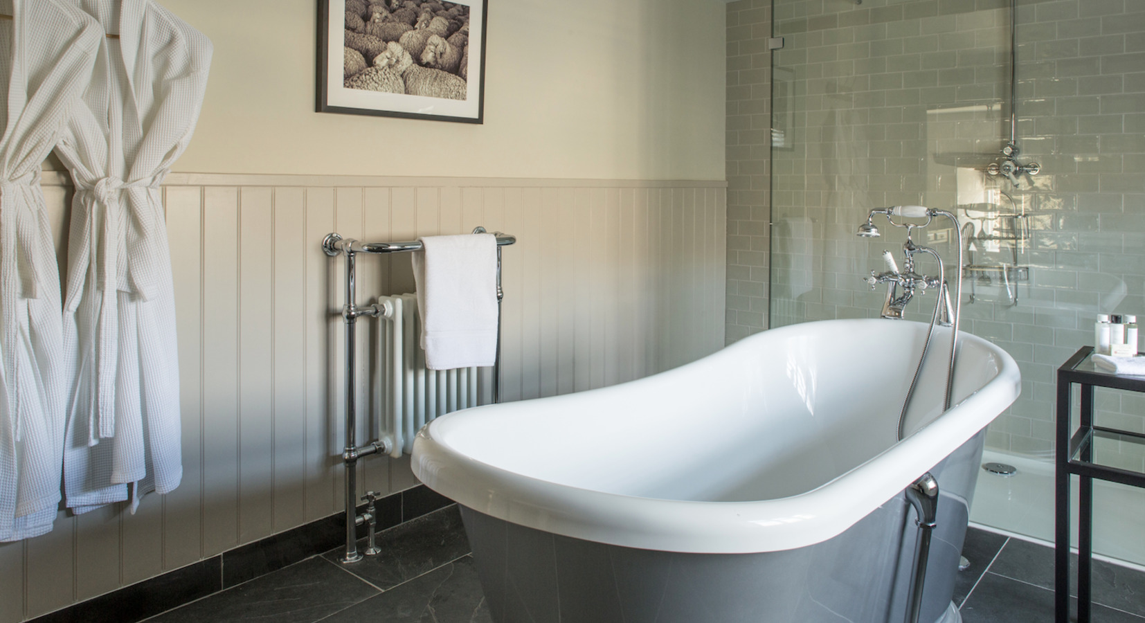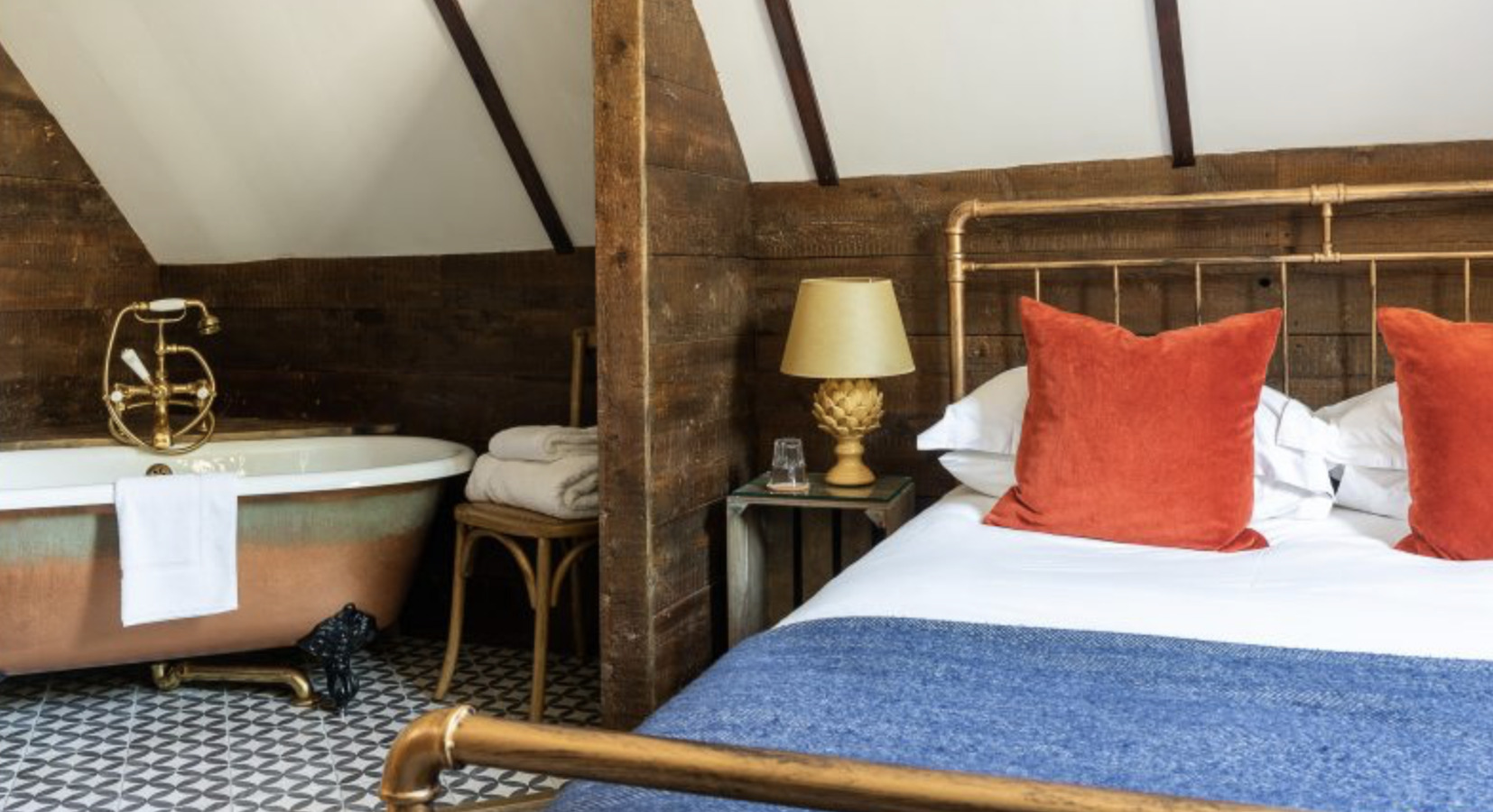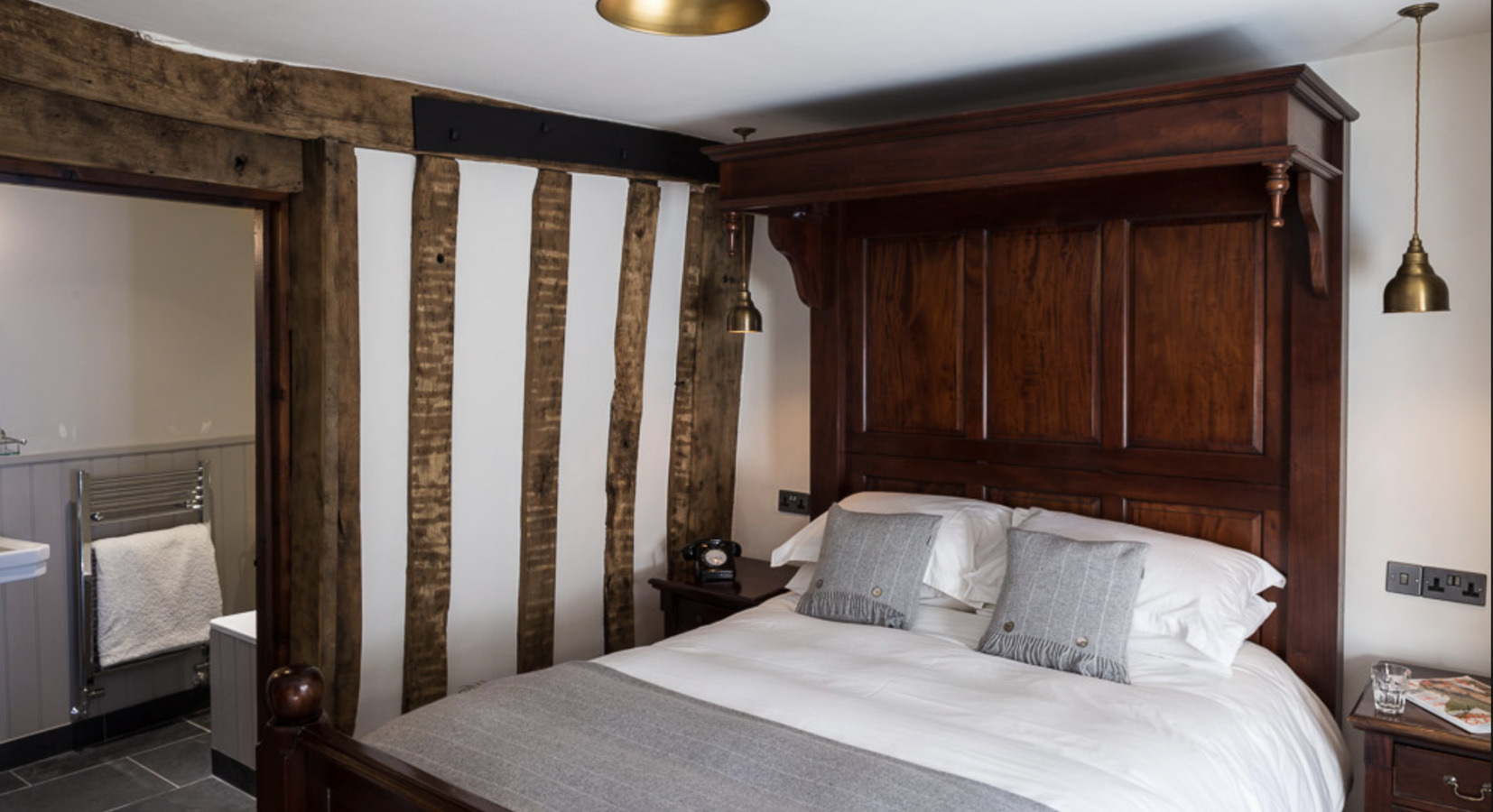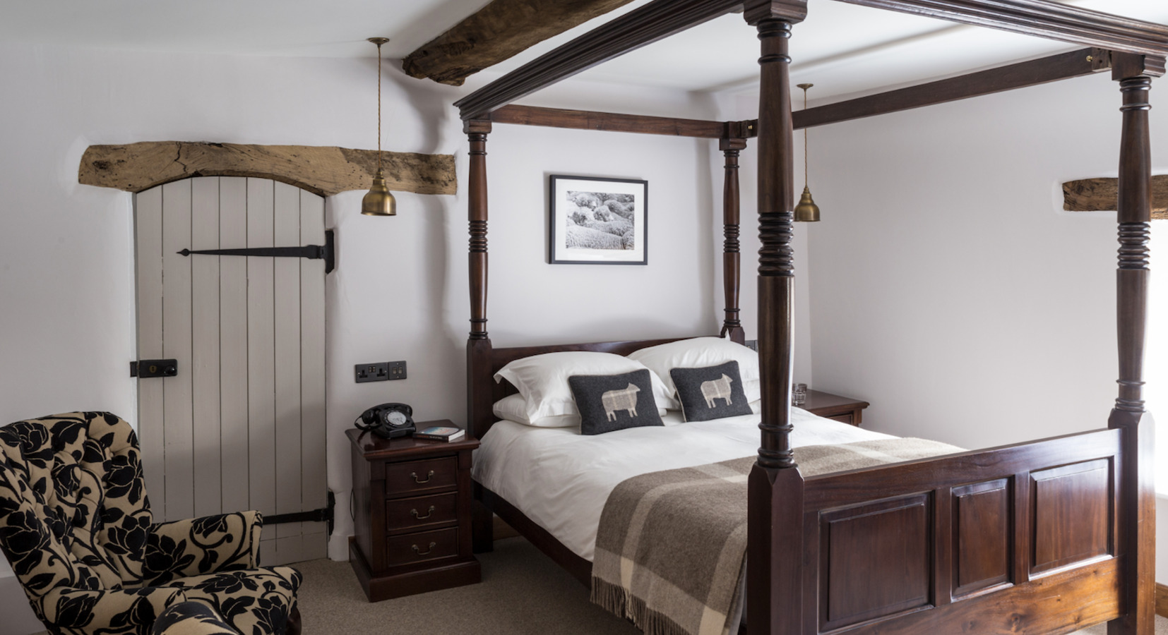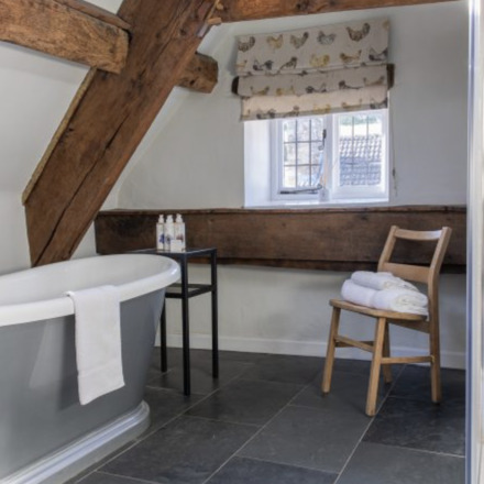Tudor Farmhouse cuenta con 20 habitaciones, todas diseñadas para mantener el carácter del edificio original mientras ofrecen un alojamiento cómodo y de estilo campestre. Entre las más solicitadas están las habitaciones que cuentan con bañeras de pie y duchas de monzón, terminadas con lencería de calidad y albornoces.