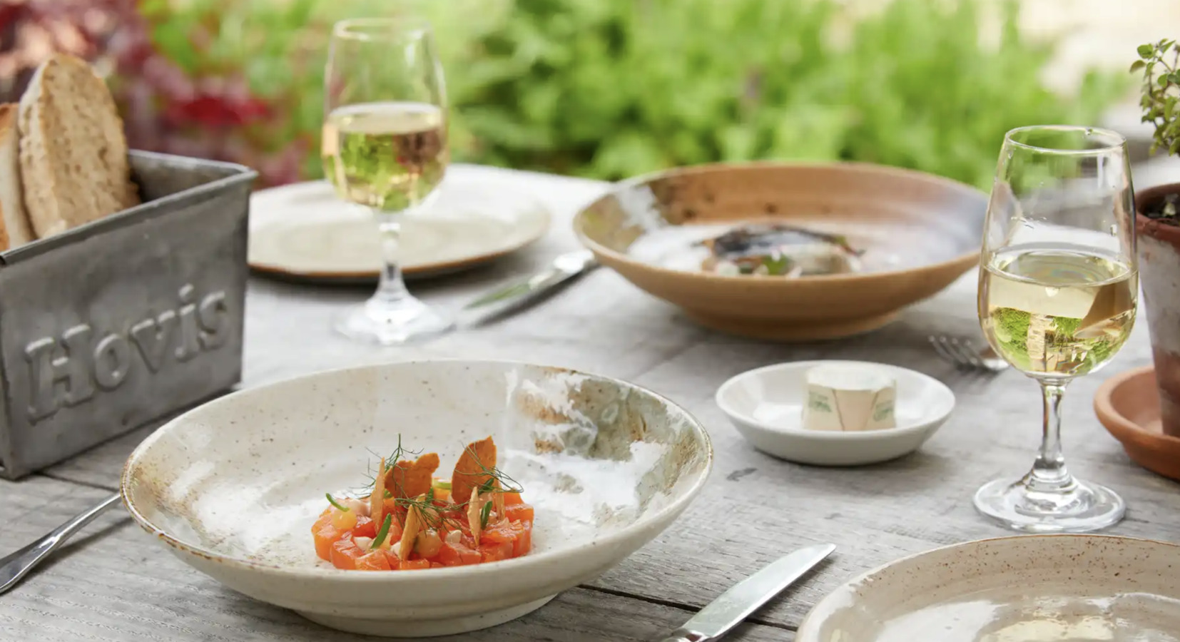 El restaurante en Tudor Farmhouse tiene 2 Rosetones AA y ha sido reconocido tanto por Condé Nast Traveller como por Tatler, este último describiéndolo como un "oasis culinario." Los menús se construyen alrededor de ingredientes de temporada obtenidos localmente y recolectados, con la cocina aprovechando productos de la zona siempre que es posible. El restaurante está abierto para desayunos, almuerzos y cenas, y también ofrece té de la tarde y bocadillos durante todo el día. Estamos encantados de recomendar otros lugares para comer y beber localmente: el Bosque de Dean y el Valle de Wye tienen una escena gastronómica y de bebidas realmente fuerte.