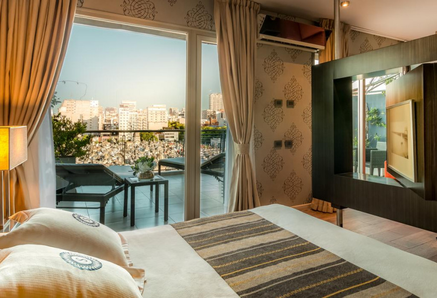 Cet hôtel-appartement fantastique, composé de suites, se trouve en face du célèbre cimetière de Recoleta. Toutes les suites sont dotées d'une kitchenette et d'un décor chaleureux, coloré et contemporain ; beaucoup disposent de terrasses meublées avec vue sur le tueur. Il y a deux bars, une salle à manger, une piscine sur le toit, un sauna et une galerie d'art. Une option boutique imbattable.