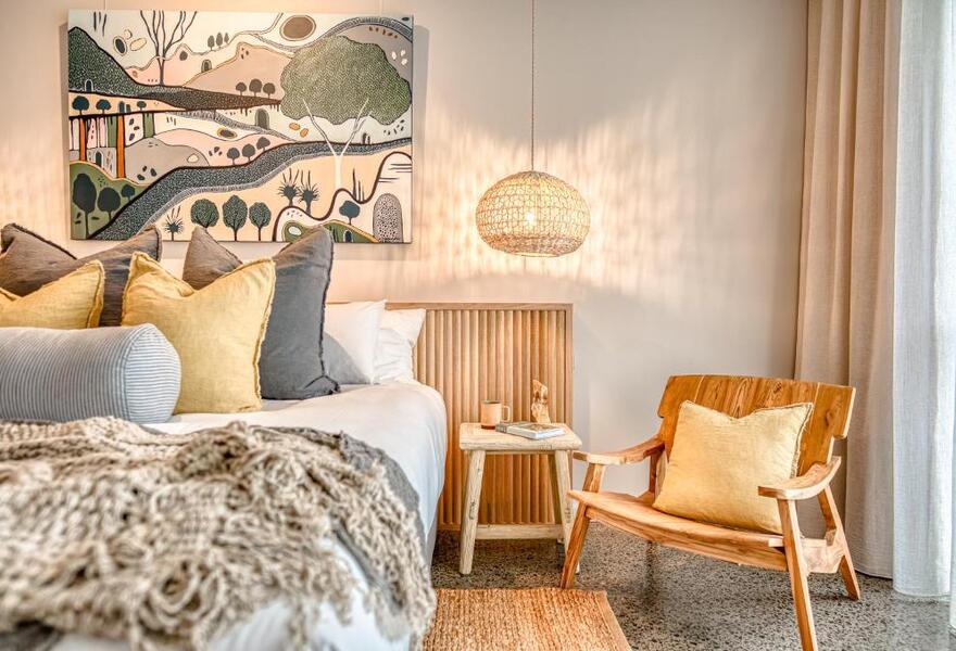 Un magnifique petit hôtel artistique de 15 chambres et suites situé dans la charmante ville d'Eumundi, en face des célèbres marchés. Les chambres branchées présentent des œuvres d'art originales réalisées par des créateurs de la Sunshine Coast et des palettes apaisantes de blanc et de jaune avec des textures naturelles. Les suites disposent de kitchenettes, de salons et de balcons. Très cool.